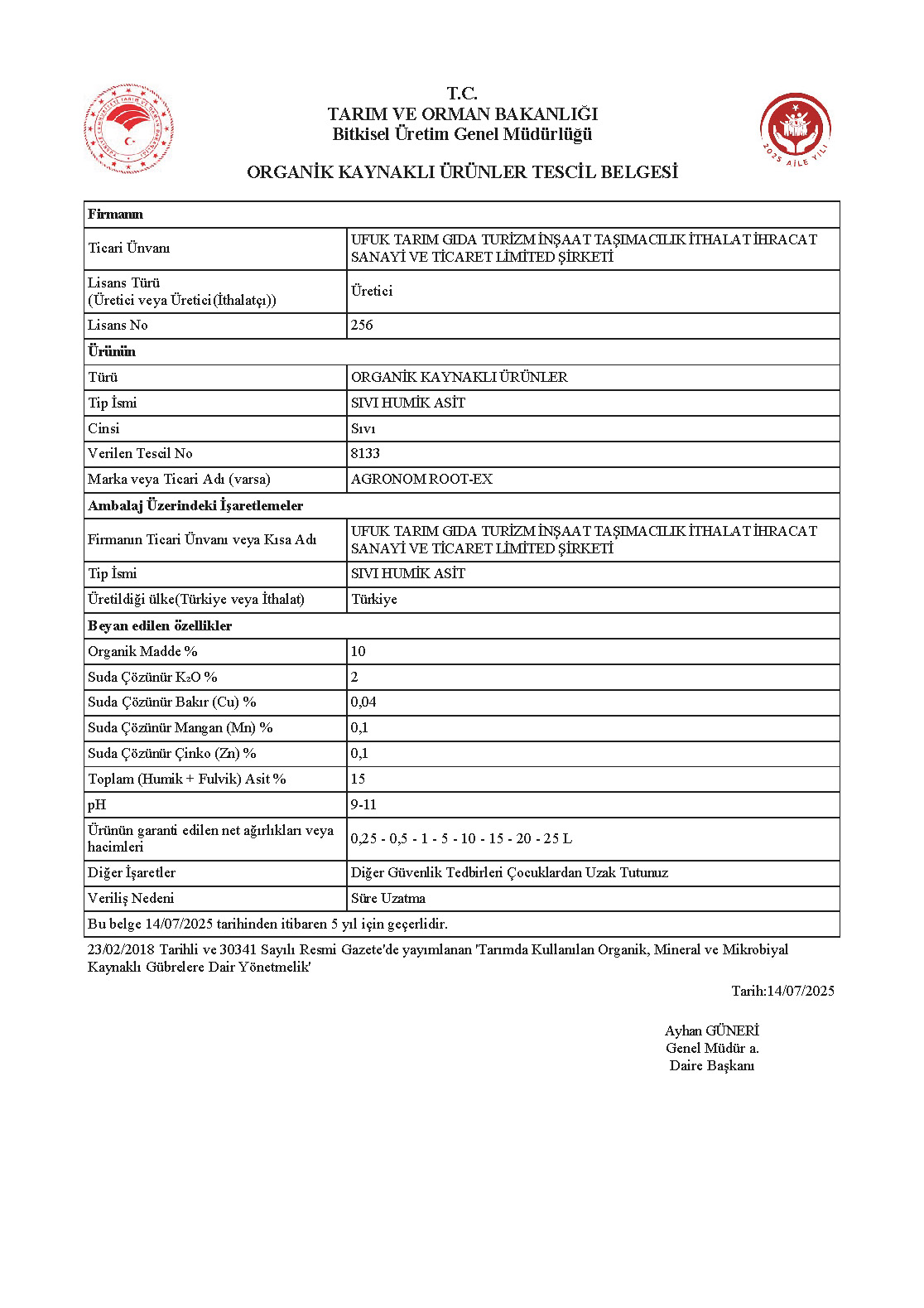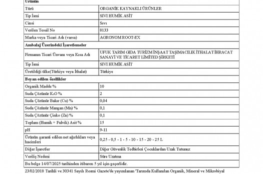 | Narenciye | Topraktan: İlkbaharda narenciye ağaçları uyandığında, ağaçların kök bölgesine verilir ve toprağa karıştırılır. | 100 ml/ dekar |